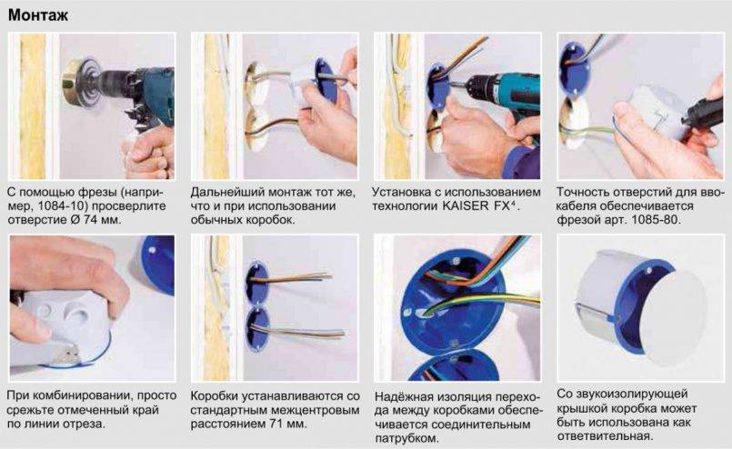 Если профиля не использовались (применялся клей или пена для монтажа ГКЛ), то придется штробить гипсокартон, чтобы провести провода. В этом случае процесс ничем не будет отличаться от установки розетки в обычную стену.