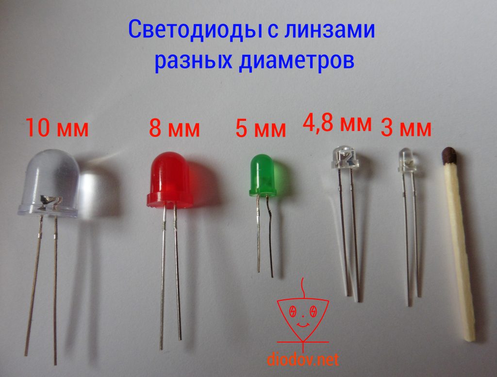Диаметр линзы, мм: 3; 4,8; 5; 8 и 10.