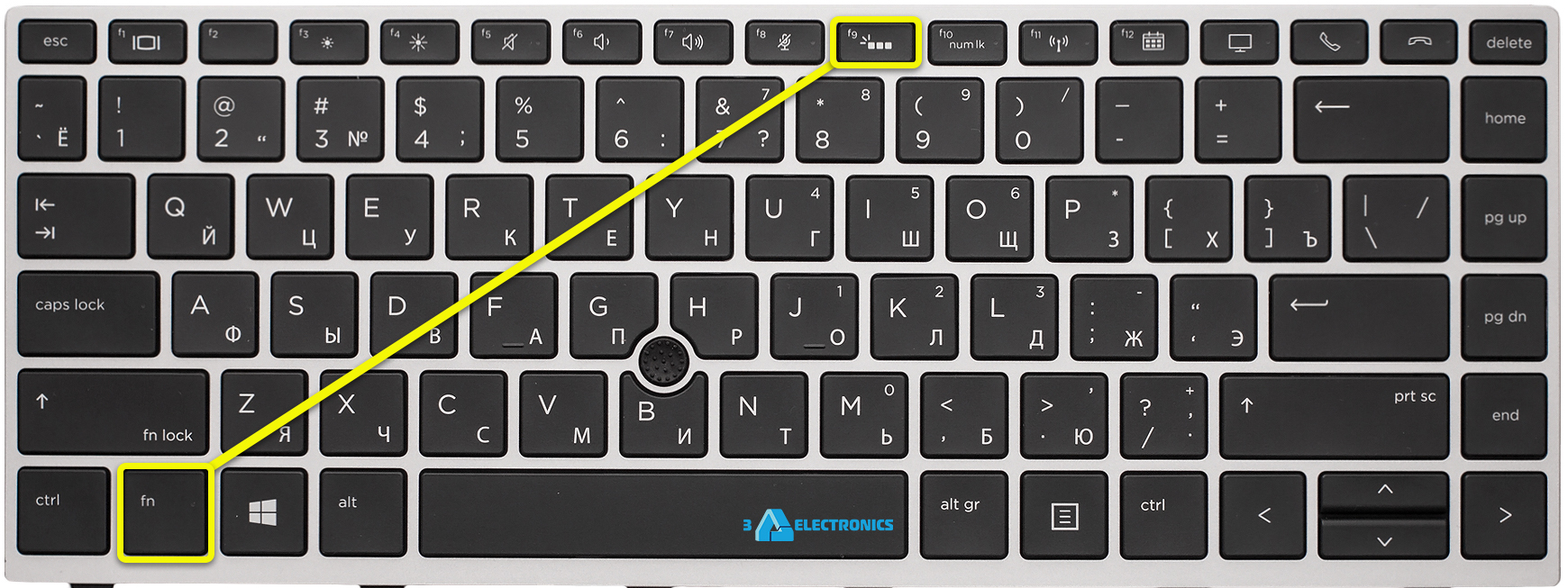 В первую очередь искать следует в ряду кнопок F1-F12. Чаще всего функция включается и выключается при использовании клавиши Fn. Получаются сочетания типа Fn+F3 или Fn+F10.