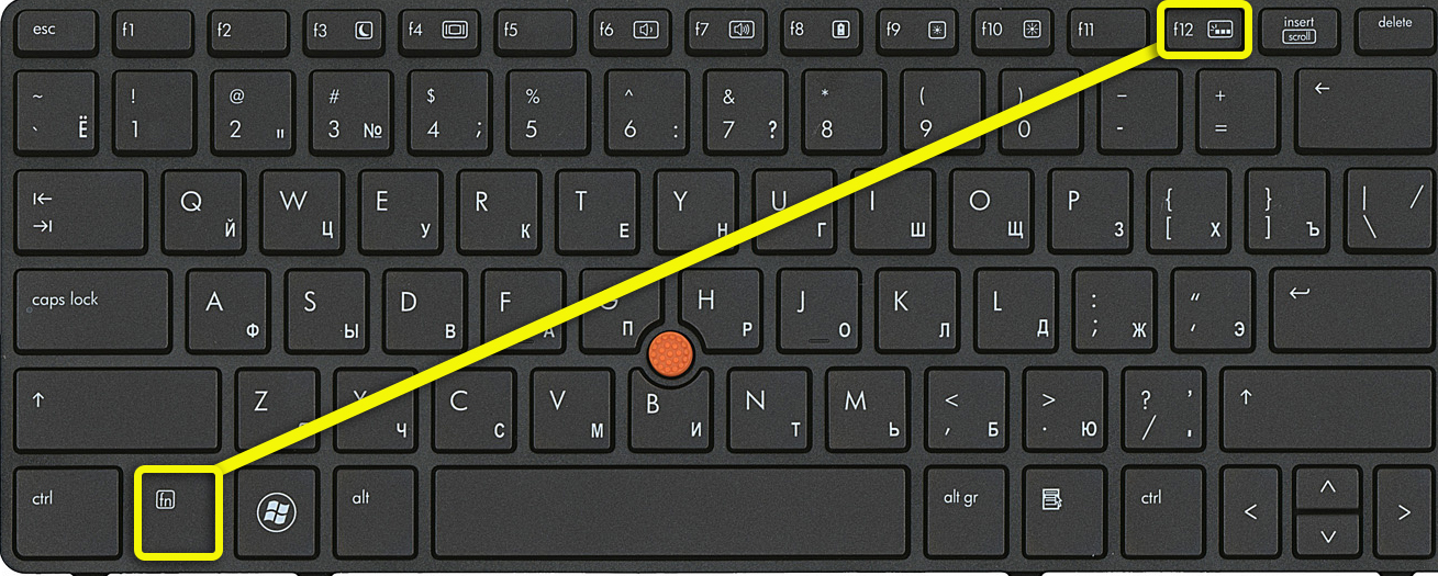 В первую очередь найдите вспомогательную кнопку Fn – она обычно расположено в нижней части клавиатуры между кнопками Ctrl и Alt (слева или справа от пробела). Я думаю, найти её у вас не составит труда.