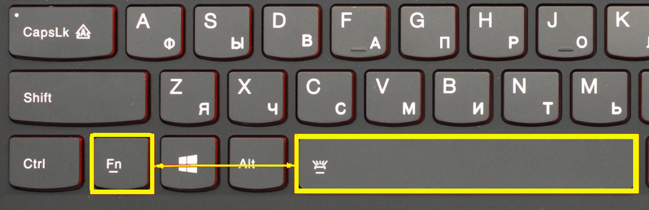 На большинстве моделей ноутбуков Lenovo, имеющих подсветку клавиатуры, используется сочетание Fn+пробел. Первое нажатие включает подсветку, второе — увеличивает яркость, третье — отключает функцию.