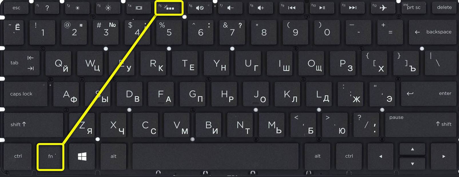 Как правило, на ноутбуках HP, где есть подсветка, управлять режимом можно сочетанием клавиш Fn + F5 или Fn + F4. Но на некоторых моделях достаточно нажатия F5 или F4 без функциональной кнопки. На других же моделях и вовсе используются другие клавиши из серии F. Но что утешает – на них чаще всего указан значок подсветки.
