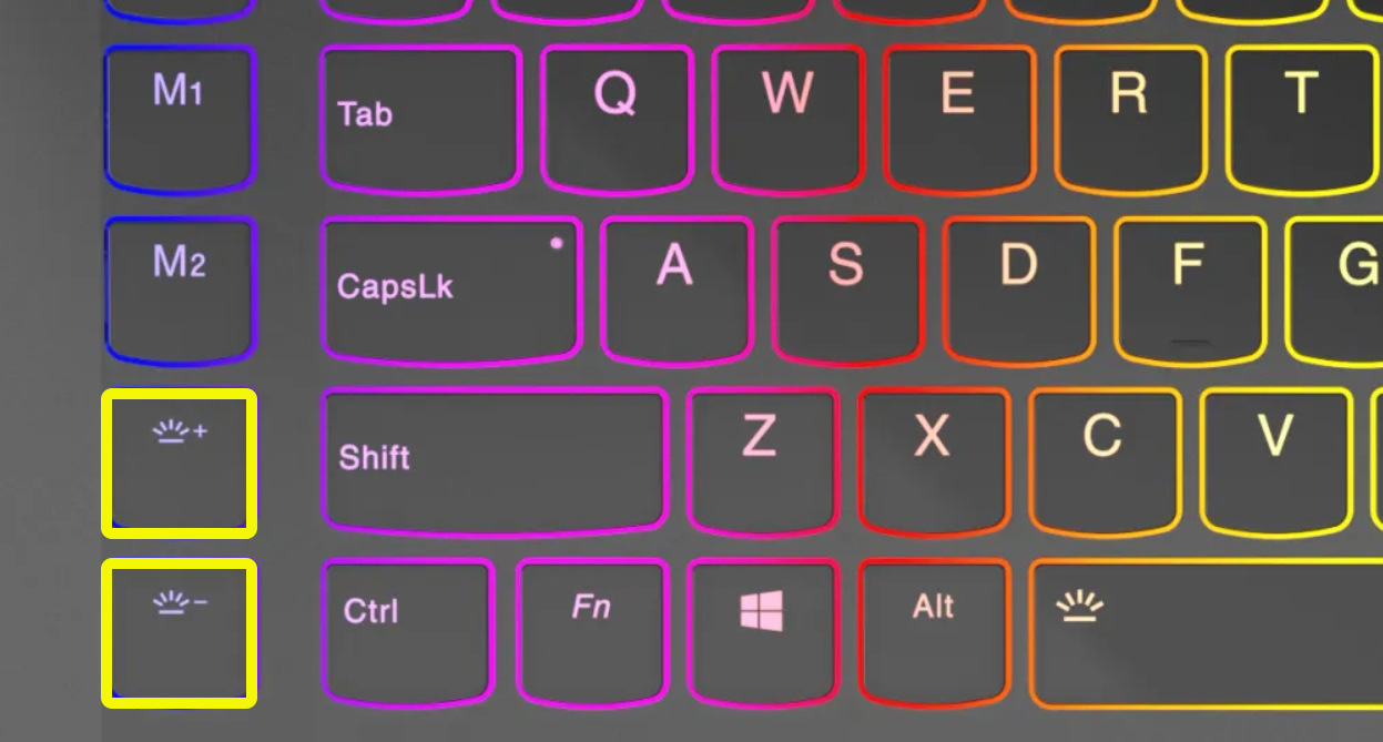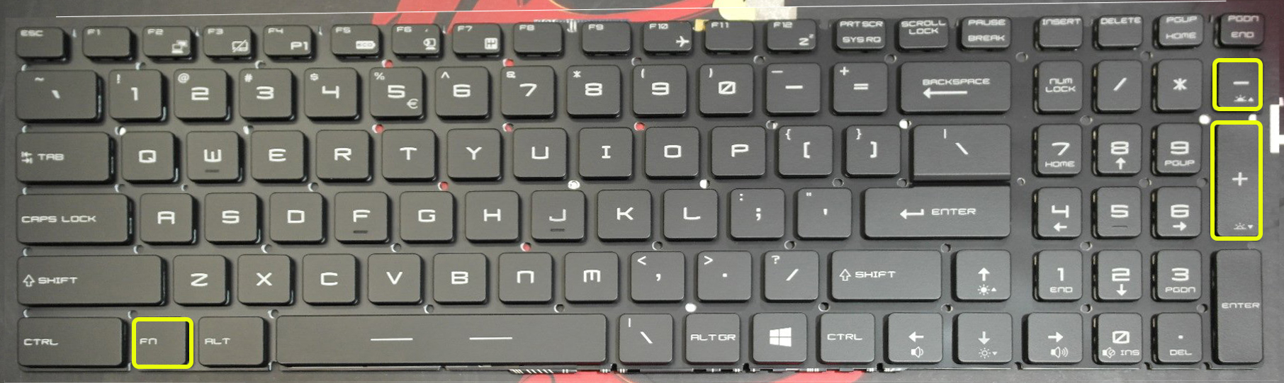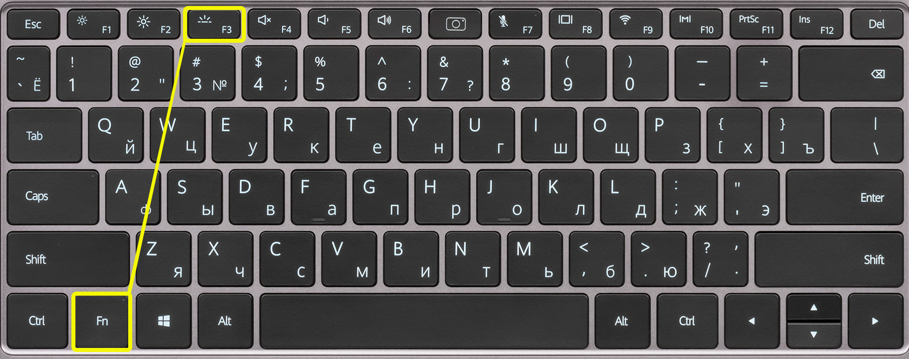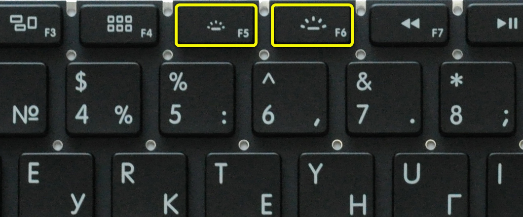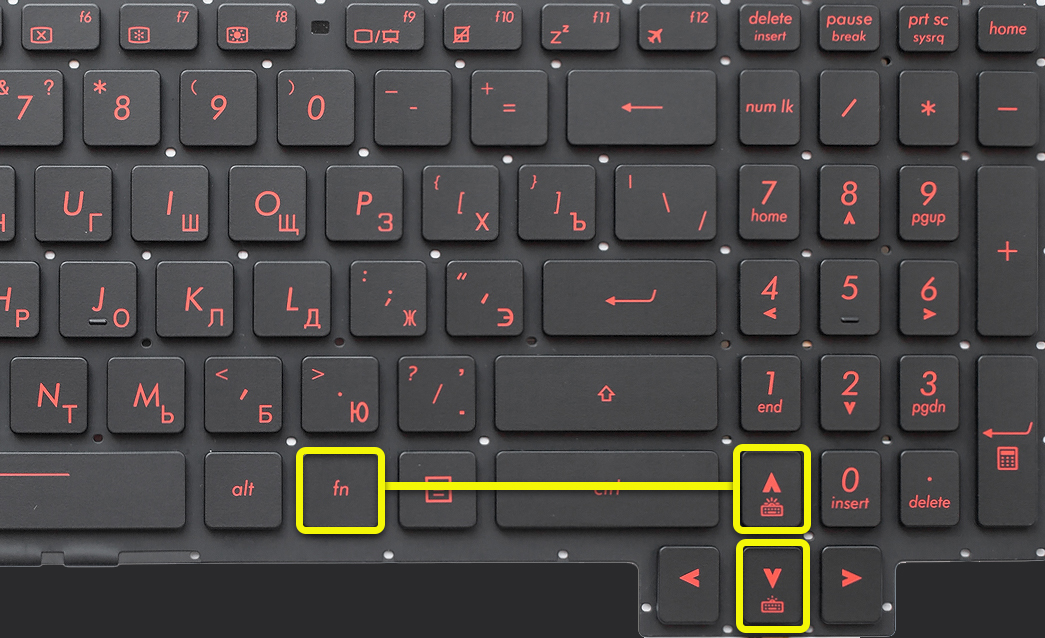 Чтобы увеличить или уменьшить яркость подсветки, зажмите сочетание клавиш Fn + F5 или Fn + F4 несколько раз: режимы будут сменяться один за другим по кругу.