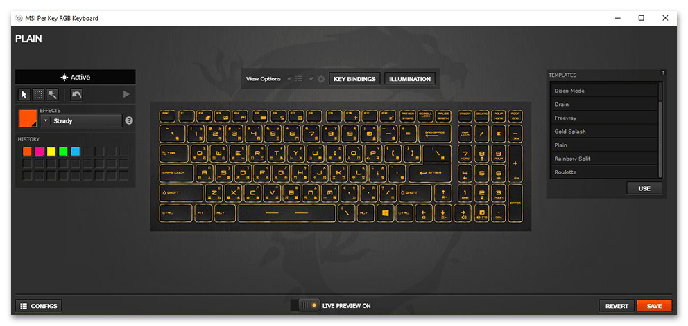Обладатели игровых устройств от MSI имеют доступ к программному обеспечению для управления клавиатурой. Совместимо оно преимущественно с моделями с поддержкой RGB и уже является предустановленным в операционной системе. Если нет, то SteelSeries Engine для MSI понадобится скачать с официального сайта в разделе с драйверами для вашего ноутбука, чтобы получить доступ к программному обеспечению и начать настройку устройства. Да, действительно, игровые модели с RGB-клавиатурой созданы вместе с компанией SteelSeries, поэтому и используется фирменное ПО для управления.