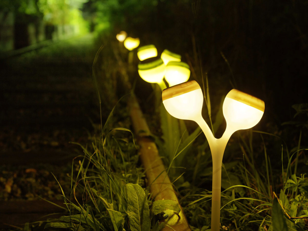 - газонные (садовые, дачные) – используются для декорирования лужаек, редких кустарников, цветников, живых изгородей, садовых композиций наподобие альпийских горок, тропинок и дорожек. Выполнены, как правило, в виде боллардов – светильников на колышках, которые идеальны для освещения небольших по площади участков;