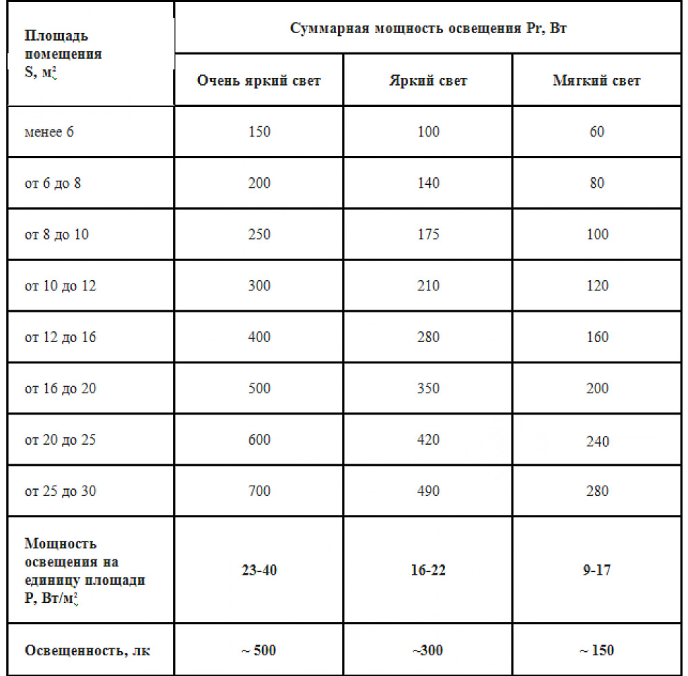 - Найденное значение разделить на мощность одного осветительного прибора, например: 84 Вт/6 Вт=14 шт.