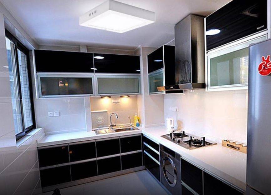 Освещение малогабаритной кухни с помощью светодиодной потолочной панели