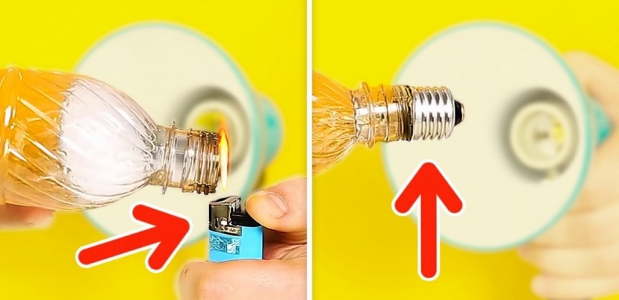 Есть еще интересный способ в котором «откручивающим инструментом» может послужить обыкновенная пластиковая бутылка из под воды или пива. Как это делается? Горлышко бутылки при помощи огня нагревают до размягчения пластмассы, можно зажигалкой. Затем горлышко втискается в цоколь лампочки и удерживается 10 — 15 сек. чтоб пластмасса застыла и схватилась с цоколем. После чего застрявшую лампочку выкручивают.