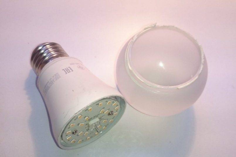 Также причиной такой неприятности может стать такой брак, при котором колба сама с легкостью отделяется от металлического основания.