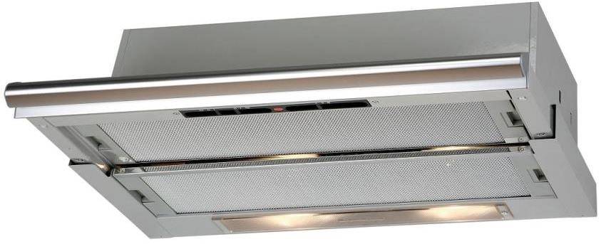 - На третьем месте CATA TL-5260 X. Телескопическая модель с двумя моторами имеет габариты 135*600*280, оснащена выдвижной панелью такой же площади. Вытяжка имеет всего два режима работы и кнопочную панель управления. Сравнительно тихий агрегат с уровнем шума до 44 дБ имеет производительность 600 м3/ч и мощность – 95 Вт. Модель недорогая и простая в установке.