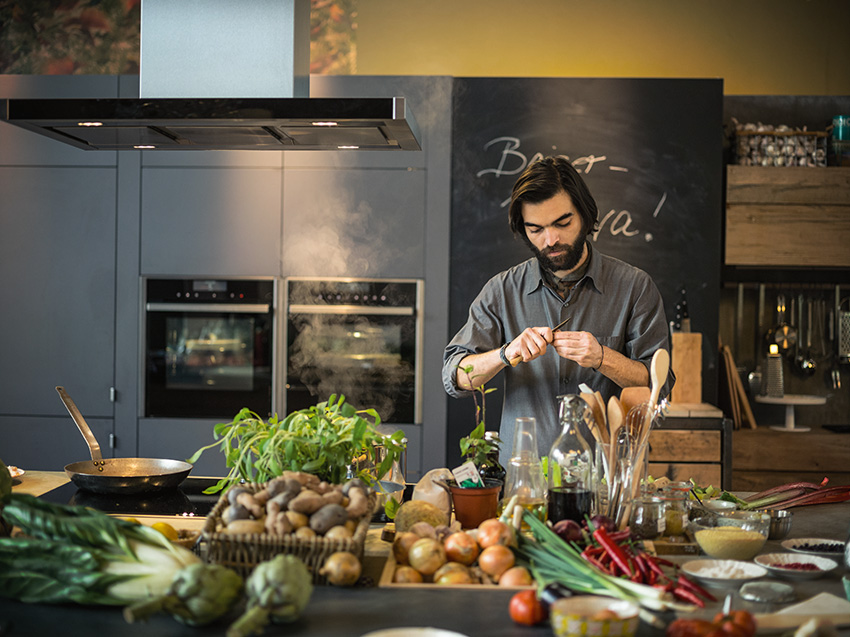 А вот если в помещении совсем мало места и вытяжку никак не вписать в общий дизайн, стоит обратить внимание на встраиваемые решения, которые монтируются прямо в кухонный гарнитур. Существуют даже модели с выдвижной дополнительной панелью, которая задействуется только во время работы