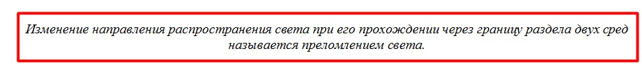 Взмахнуть рукой в воздухе гораздо легче, чем провести рукой внутри воды. Вот и свет проходит в разных средах (например, в вакууме, стекле, воздухе, алмазе, воде) тоже по-разному. На границе двух различных сред меняется направление хода лучей света.