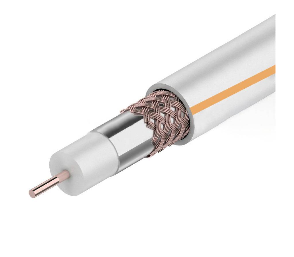 Производитель коаксиального провода – компания Cavel (Италия). Сердцевина медная толщиной 1 мм, уровень защиты двойной усиленный, коэффициент от 60 дБ, общий диаметр 6,6 мм. - SAT 703.