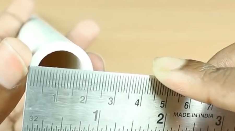 Отметим на трубе необходимую длину — примерно от 9 до 20 см. Желательно соблюдать пропорцию 4-5:1. Т.е. если у вас труба диаметром 20 мм, то её длина составит от 8 до 10 см.