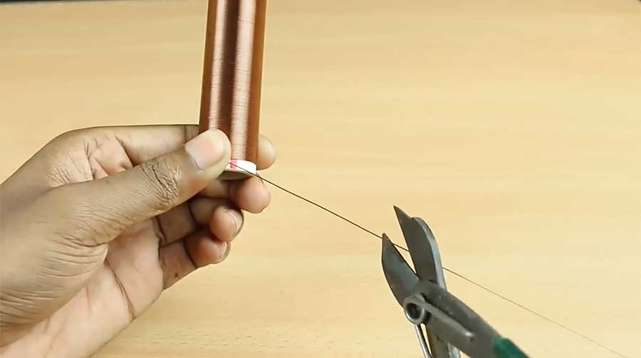 После того, как намотка закончена, обрежьте проволоку, оставив кусок сантиметров 10.
