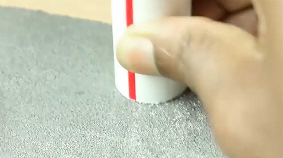 Торец трубы надо зашкурить наждачной бумагой с обеих сторон. Необходимо убрать стружку, оставшуюся от отпиливания куска трубы, а также выровнять поверхность для приклеивания её к основе.