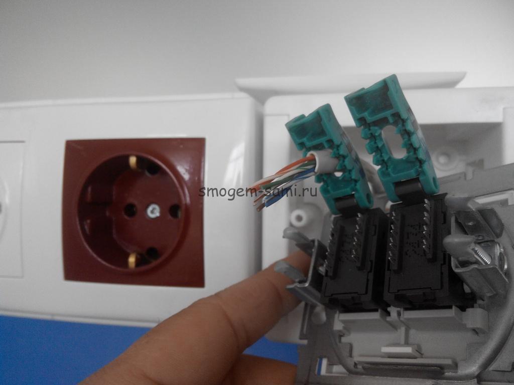 При необходимости обжимаем и вторую розетку аналогичным способом.