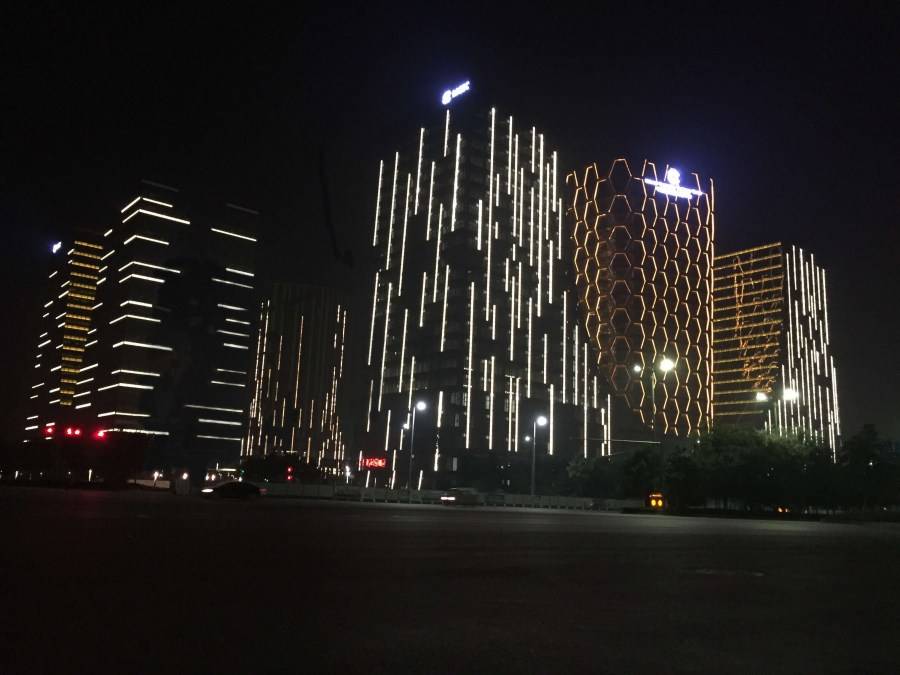 Большое количество лампочек располагаются на нижнем уровне здания. В ночной период времени большая часть жилой постройки будет погружена в яркое освещение.