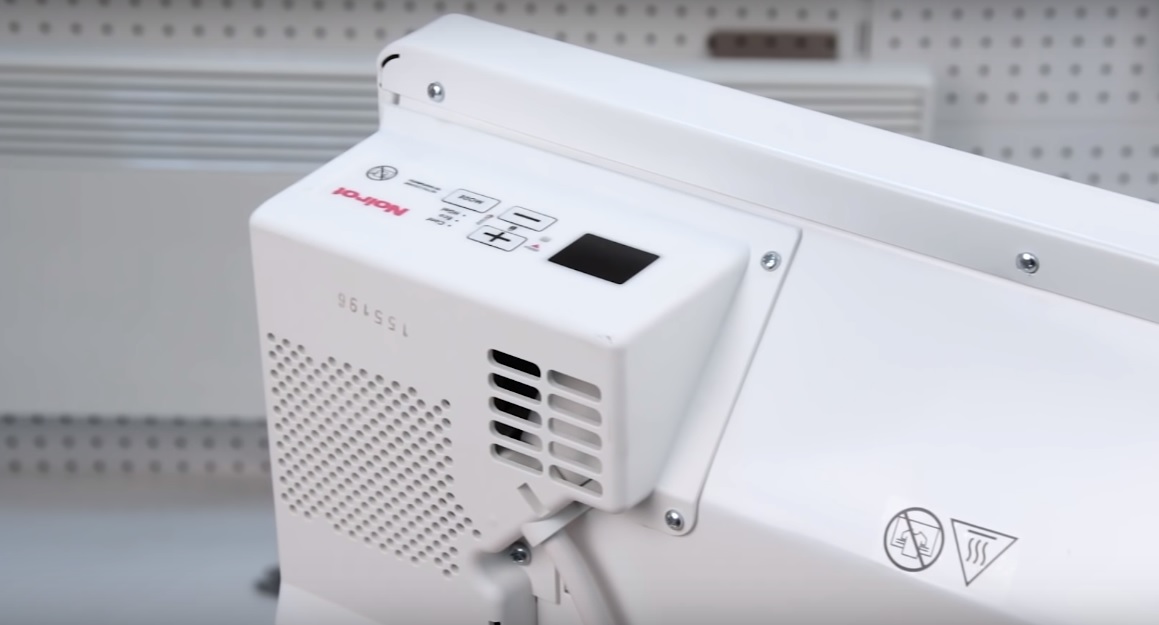 - Noirot Spot E-3 1000. Это настенный конвектор с высоким КПД. Имеет красивый внешний вид, защиту от перегрева и много других функций. Благодаря большому объему памяти настройки системы легко восстанавливаются, что удобно при проблемах с электричеством. Недостатки: короткий шнур и неудобный переключатель режимов. Цена варьируется в среднем диапазоне. Страна производитель — Франция.