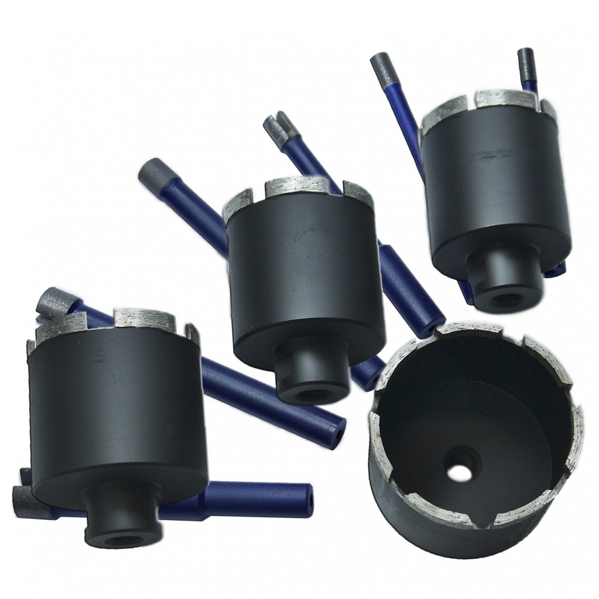 - Мокрые. На стенках цилиндра отсутствуют отверстия. При сверлении насадку смачивают водой для охлаждения.