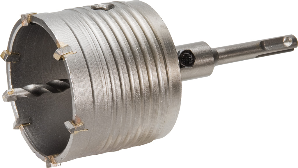 Эти инструменты используются для выполнения отверстий большого диаметра в бетоне. Сверло может быть как алмазным, так и сверлом с твердосплавными вставками.
