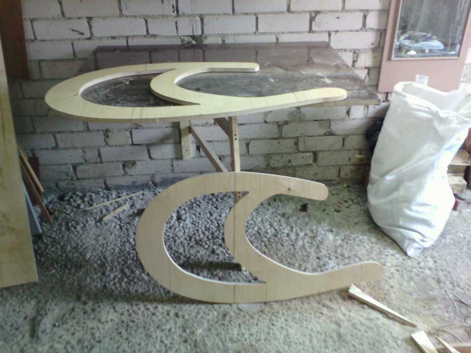 Для начала подготавливаются боковые детали которые, являются наряду с этим и полозьями, а также основанием к креслу. Две детали выпиливаются лобзиком.