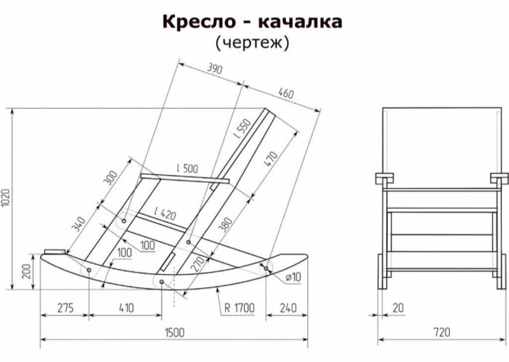 Такие кресла не могут опрокинуться из-за особого строения достаточно длинных полозьев, имеющих переменную кривизну. Чертеж построить самостоятельно достаточно сложно, лучше использовать готовый вариант, но сделать такое кресло самостоятельно получится вполне.