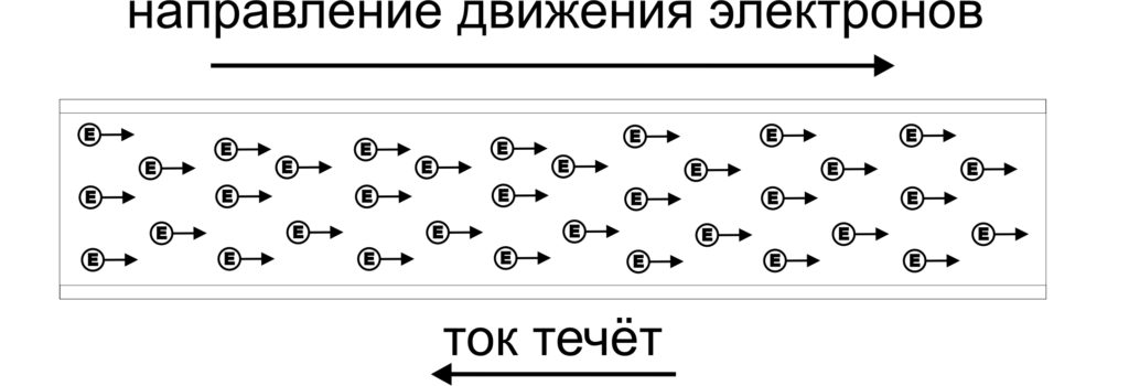 Маленькая особенность: так как само явление электричества было открыто гораздо раньше его природы (упорядоченного движения электронов в металлах), а раньше люди думали, что движутся положительно заряженные частицы), то принято считать, что электрический ток течет от плюса к минусу, хотя сейчас уже ясно, что всё происходит наоборот. В консервативном мире науки решили ничего не менять и продолжают пользоваться веками укоренившейся схемой.