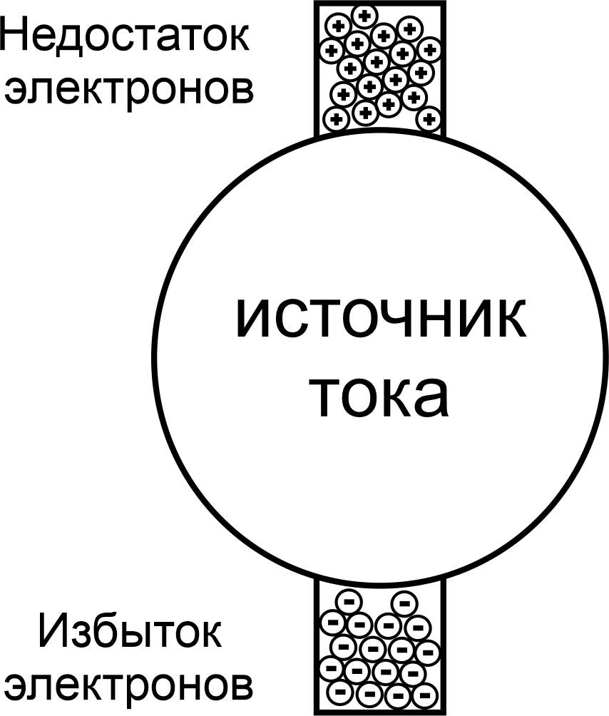 Не углубляясь в разновидности проводников, рассмотрим обыкновенные электрические провода и электроны, бегущие в них. Электроны заряжены отрицательно, значит их массовое скопление — это отрицательно заряженный объект. В то же время положительно заряженный объект — это место где имеется нехватка этих самых электронов, а значит скопление ионов (атомов с недостающими электронами). Так как природа стремится воссоздать равновесие, образуется поток электронов от минуса к плюсу.