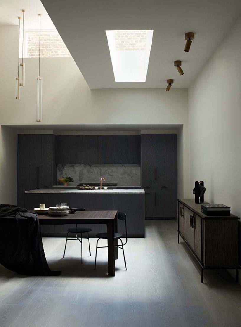 Большую роль организация правильного освещения имеет и для кухонного пространства. В первую очередь, они помогут произвести зонирование пространства. Для этого в зоне отдыха применяется более щадящее, приглушенное освещение, способствующее расслаблению и спокойному принятию пищи. Нередко можно встретить над обеденным столом светильники настенно-потолочные подвесные с мягким светом или же бра. Рабочая зона должна быть достаточно светлой (иногда современные мебельные гарнитуры продаются уже оснащенными встроенными светильниками).