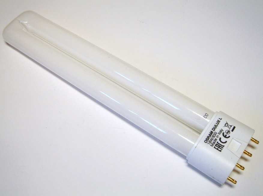 Лампочки с такими цоколями относятся к люминесцентным. Внешне напоминают G23. Колба осветительного прибора имеет вытянутую форму в виде буквы «П». В таких цоколях установлен пусковой стартер и конденсатор.