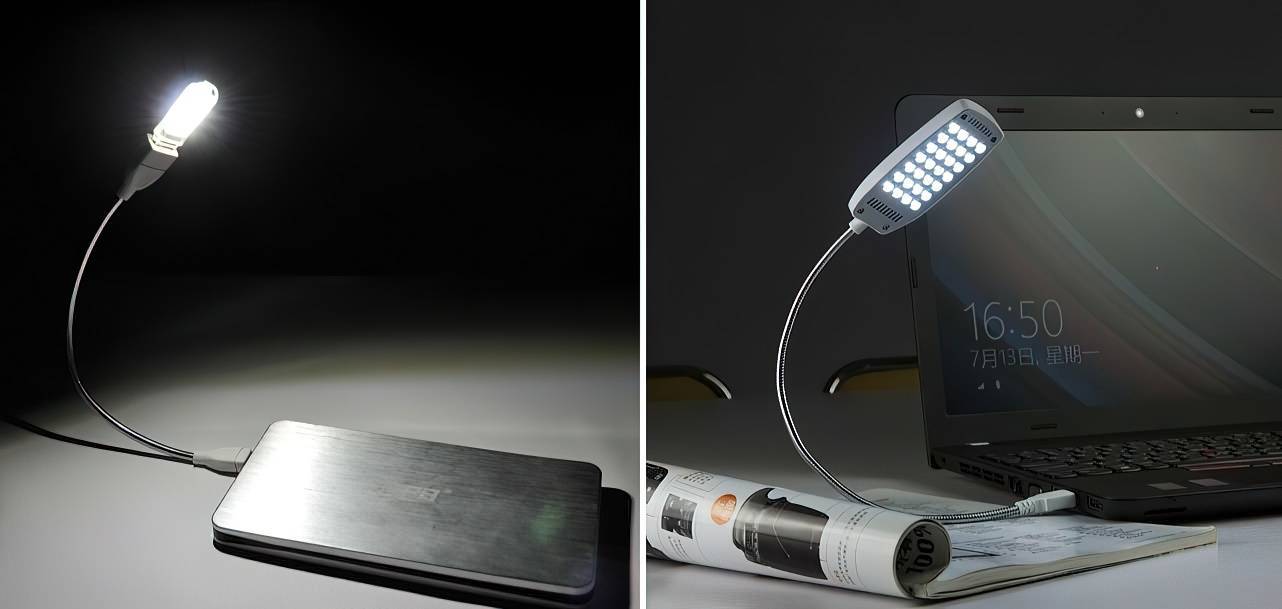 Подключить к ноутбуку можно небольшую ЛЭД лампу