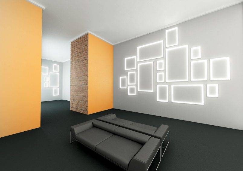 - LED-панели и «кирпичи». Крупные осветительные средства для освещения кабинетов, офисов, развлекательных центров и спортивных сооружений, производственных, складских помещений и даже улиц.