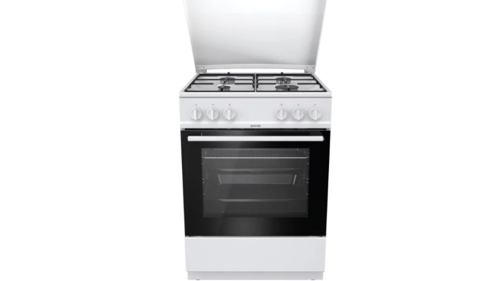 Газовая «классика» Gorenje G 6111 WJ с духовкой увеличенной вместительности (74 л в объёме), что достигается благодаря сводчатому потолку, припрятанному за передней верхней стенкой. В столь объёмный духовой шкаф помещается крупная птица или молочный поросёнок целиком, более равномерному приготовлению которых способствует система обдува горячим воздухом при помощи вентилятора. Для лучшего контроля процесса приготовления пищи в духовке реализована встроенная подсветка. А в уходе за внутренними поверхностями оказывает содействие функция очистки паром AquaClean, помогающая избавиться от жира и загрязнений. Плита оборудована варочной панелью с четырьмя конфорками разного диаметра и мощности. Над всеми ими возвышаются чугунные решётки, которые отлично выдерживают высокие температуры. Также в модели нашла применение классическая система автоматического электроподжига конфорок.
