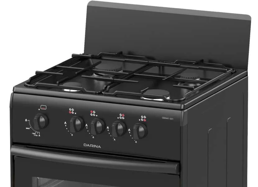 DARINA S GM441 001 At. Корпус с 4-мя конфорками дополнен духовкой на 43 литра. Несмотря на низкий ценник, две конфорки имеют функцию быстрого разогрева, а духовка оснащена газ-контролем, и разогревается быстро. Минусом многие считают простые, не вызывающие доверия, материалы изготовления.