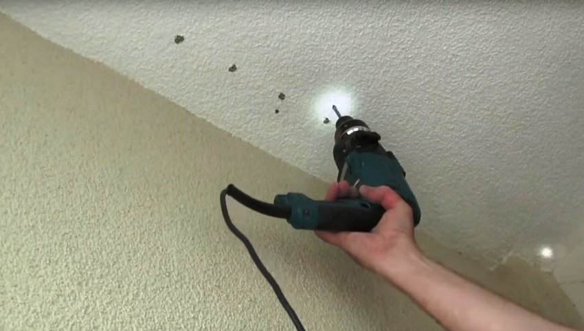 - Чтобы закрепить кронштейны в потолке, просверлите отверстия для саморезов или анкеров.
