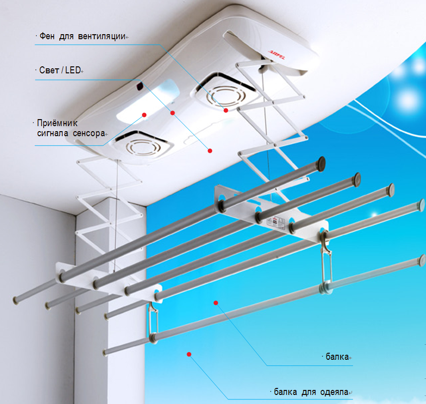 Потолочная сушилка для белья на балкон: особенности конструкции