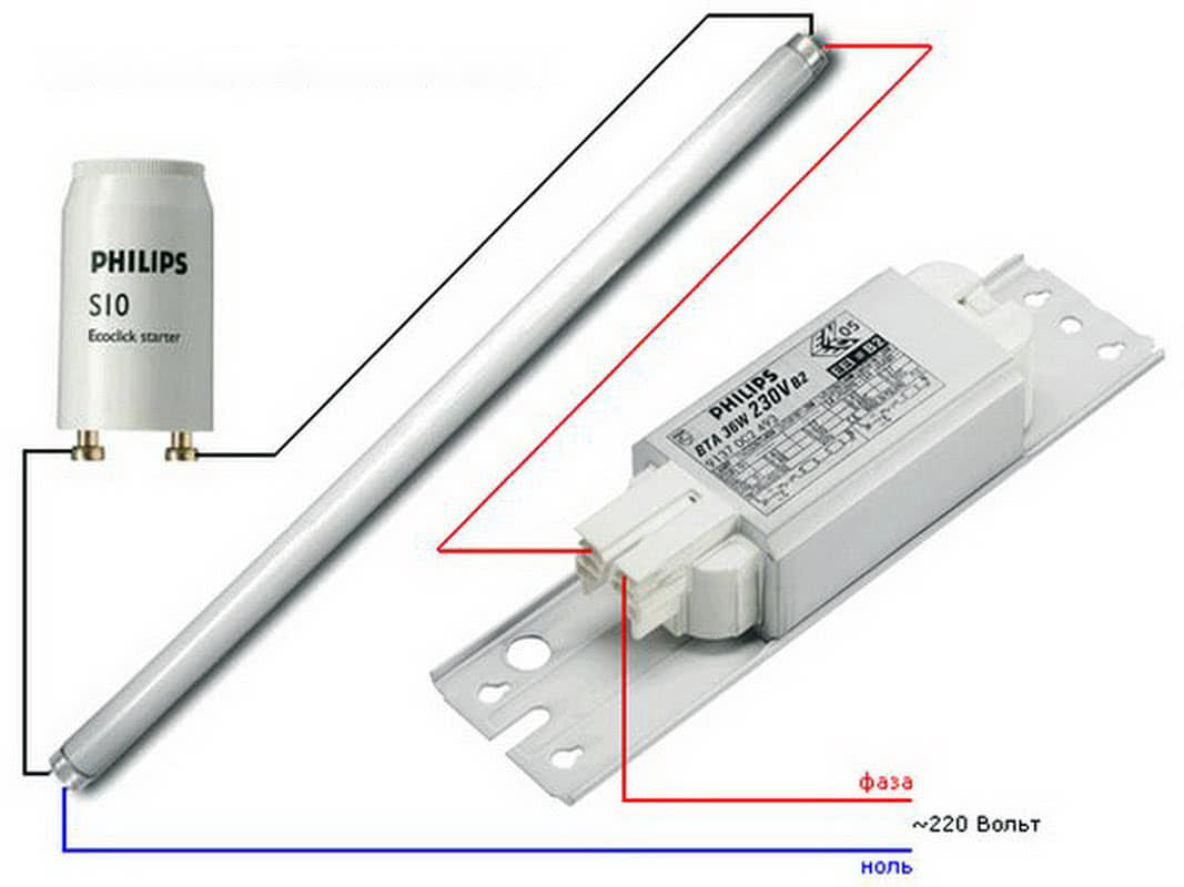 Люминесцентную лампу можно подключить несколькими способами. Выбор зависит от условий эксплуатации и предпочтений пользователя.