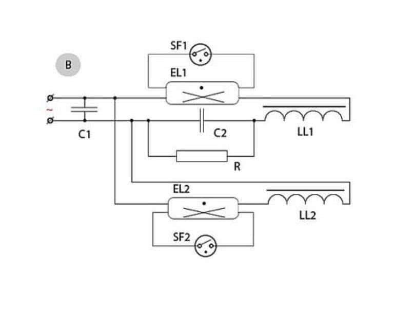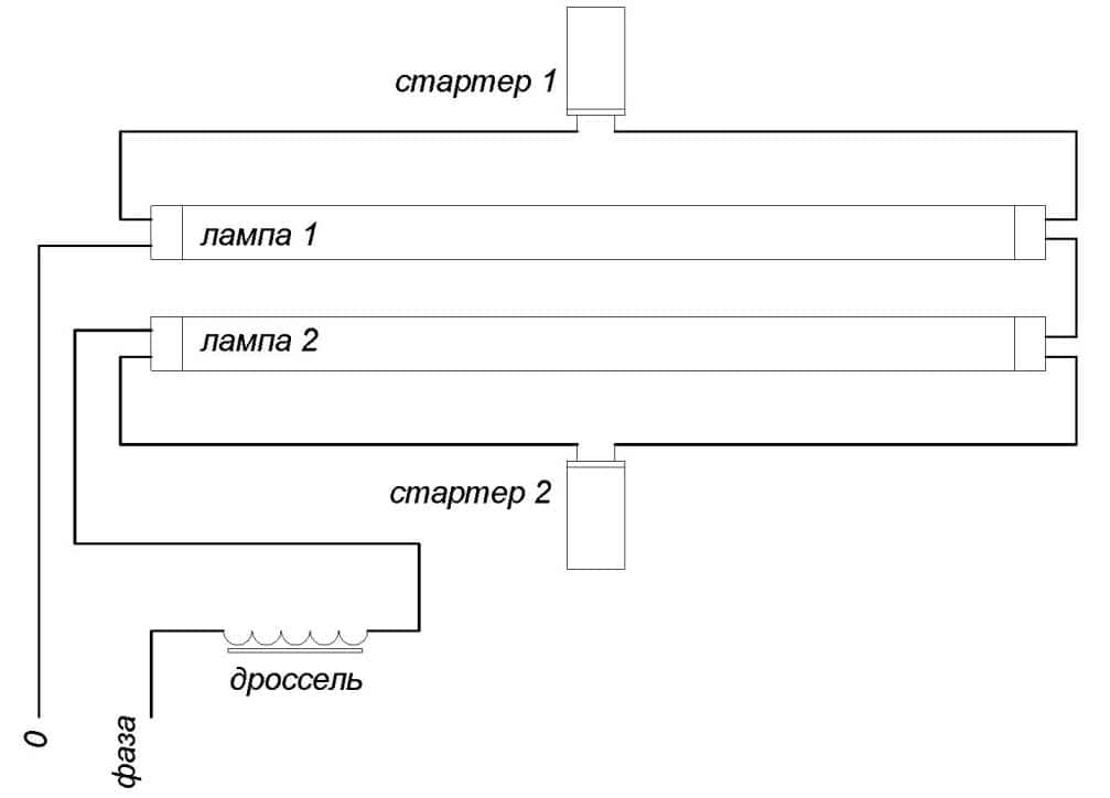 Схема подключения двух ламп от одного дросселя