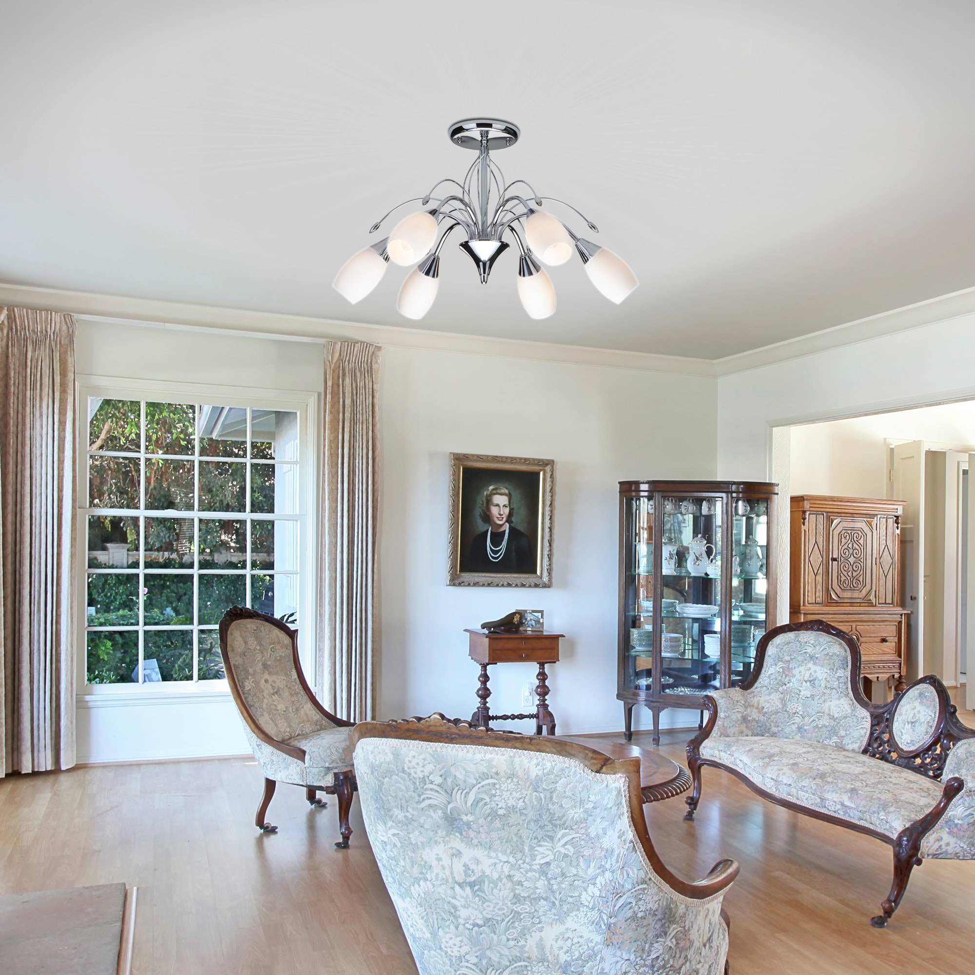 Люстра на 8 лампочек. Высокий уровень освещения