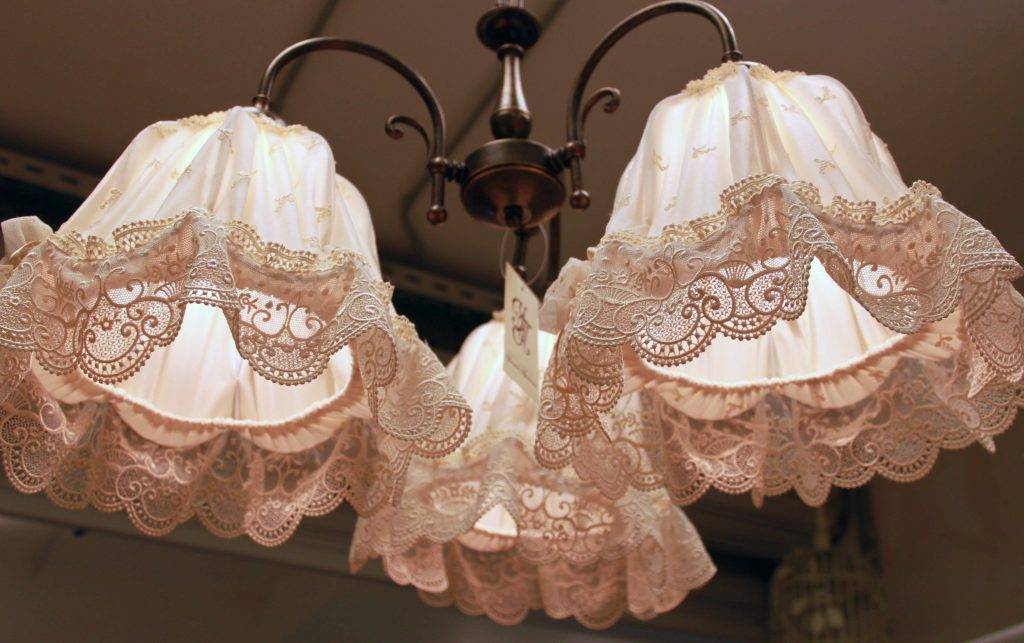 - Обтянутый кружевом абажур, добавит стильной утонченности.
