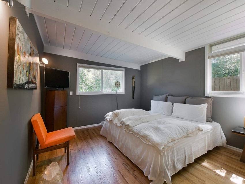 Потолок окрашивается исключительно в белый цвет, но допускается использование светло-серого оттенка