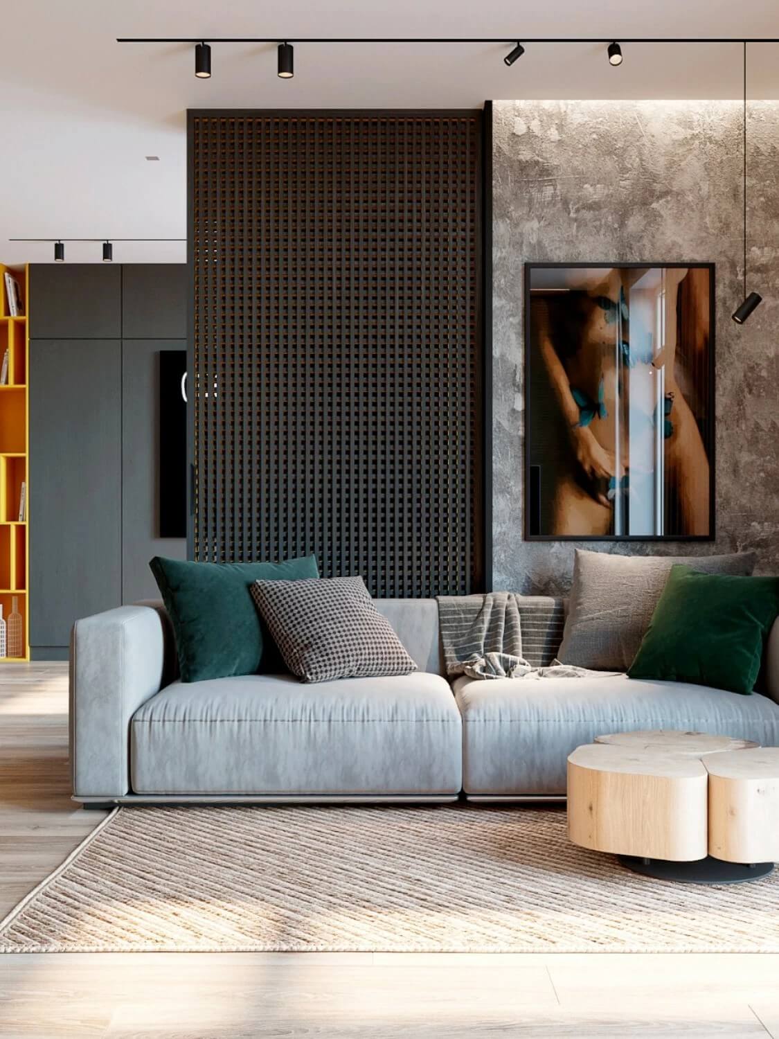 Трековая система как элемент акцентного освещения в проекте квартиры для пары с ребёнком и собакой, дизайнер Евгений Бобрик