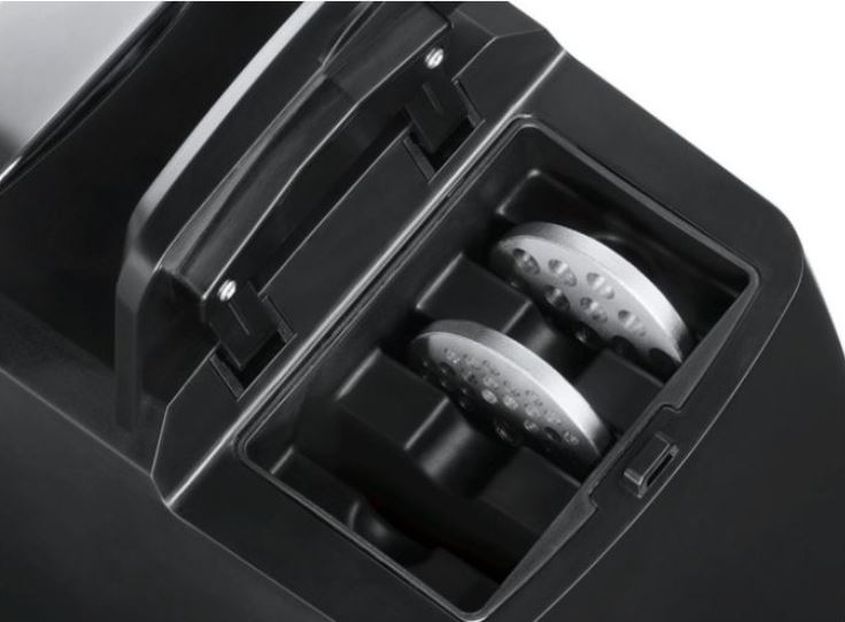 Пятерку лидеров открывает CENTEK CT-1617. Элегантная машина бюджетного сегмента выполнена в стильных серебристо-черных тонах. “Фишками” предложения выступают миниатюрный SLIM дизайн, а также — наличие алюминиевого лотка и стального коннектора. Отмечается, что металлические внедрения положительно влияют на бесперебойное функционирование.