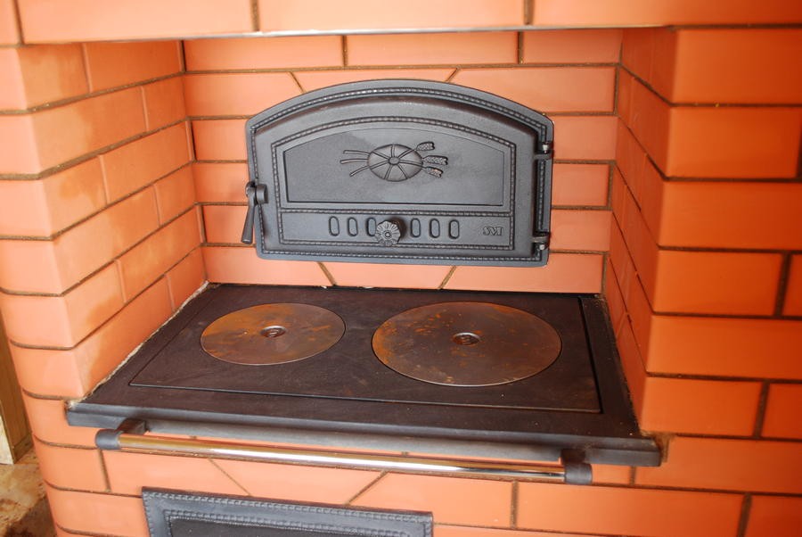 Варочный настил из чугуна имеет отверстие, закрывающееся диском и кругом. В продаже есть и сплошные настилы. В нише для духовой камеры располагают металлическую духовку или водогрейный бачок с краном. Если нишу оставляют свободной, она служит для просушки вещей. Для возведения печки понадобится: