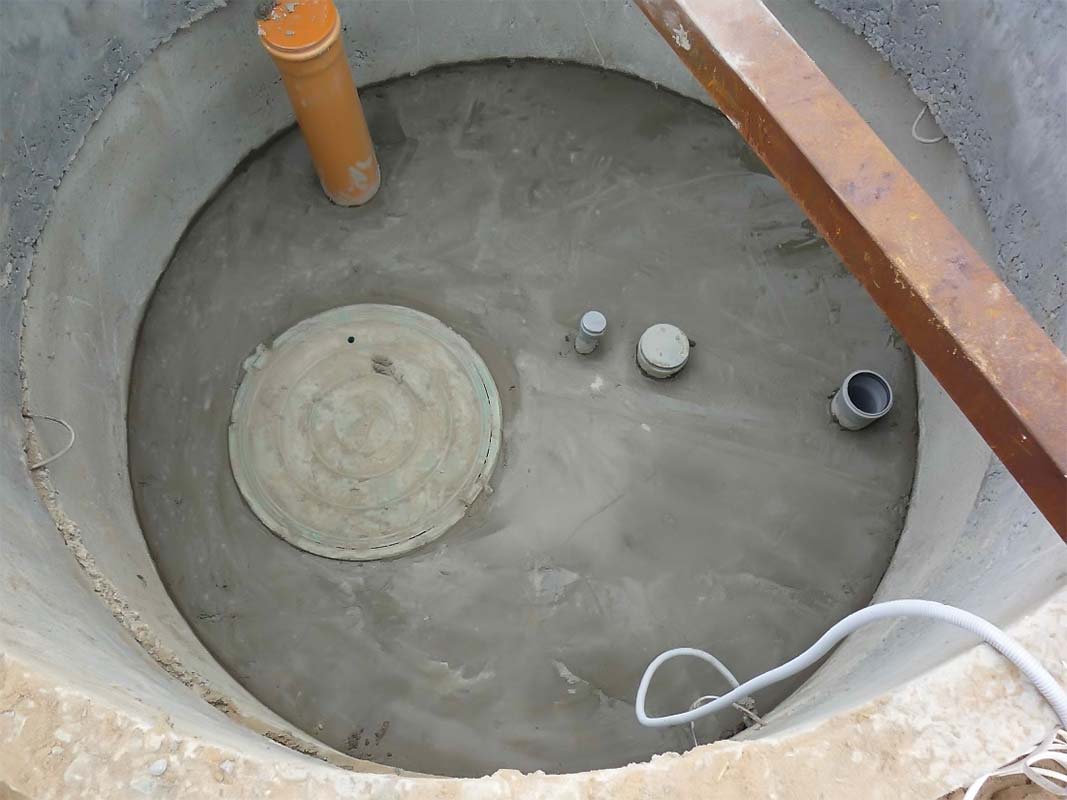 Накопители или «канализационные колодцы» монтируются из бетонных колец и пластиковых.