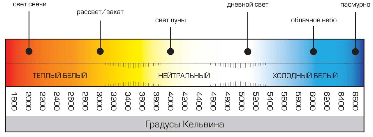 Все световые приборы люминесцируют, то есть поглощают свет лампы и преобразуют его в свечение, подобное солнечному. Цветовая температура может варьироваться от 2800°К до 12000°К в зависимости от типа лампы. Для информации – цветовая температура Солнца составляет 5000°К.