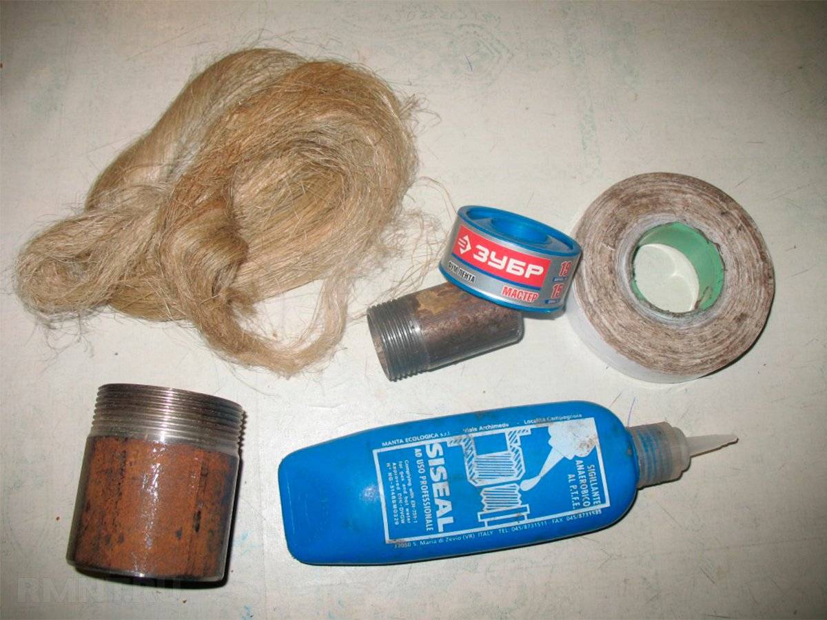 При работе с трубами и фитингами нельзя обойтись без уплотнения резьбовых соединений. Как ни мудрили учёные мужи, изобретая альтернативные материалы для подмотки, а традиционный лён никому превзойти не удалось! Но в подмотке льном есть некоторые хитрости и кое-какие технологические новшества. Так, для надёжной фиксации льняной подмотки, нужно взять пучок подлинней, сделать на одном конце его петлю наподобие удавки, которую накинуть на конец резьбы, затянуть её, а свободный остаток намотать по ходу резьбы.