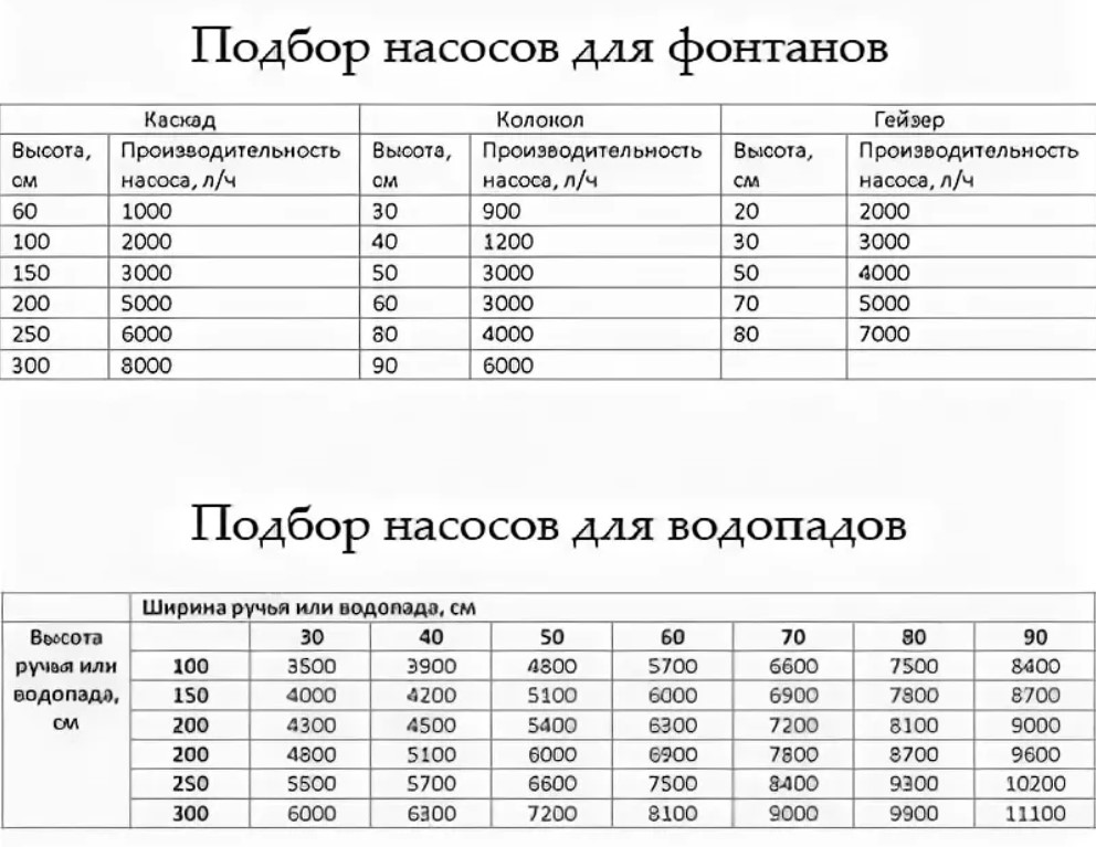 Погружные и поверхностные насосы используются для фонтанов или водопадов. Их выбор зависит от особенностей эксплуатации, поставленных целей, свободного пространства и эстетических пожеланий.