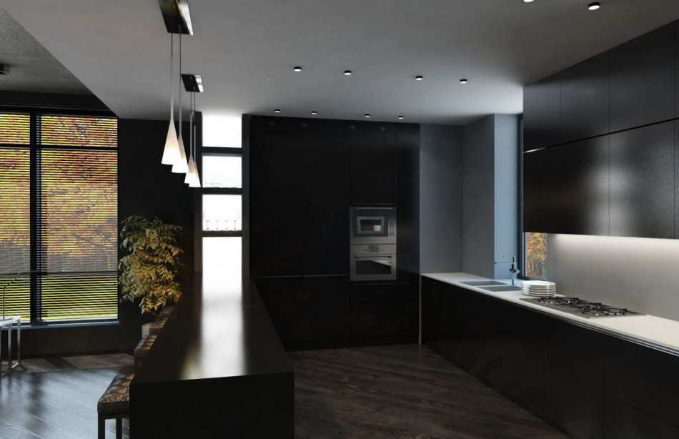 Подвесные лампы, прикрепленные к потолку, играют роль промышленного освещения всей комнаты или отдельных ее участков. Подвесное освещение очень подходит для подсветки кухонной зоны, особенно если это лампы с куполообразным абажуром.